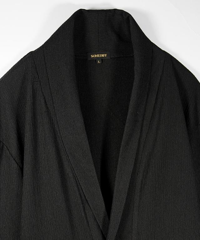 SOMEDIFF(サムディフ)『楊柳ショールカーディガン』【サマーリゾートショールカーディガン】■Design/デザイン纏うだけで、余裕のある色気を。春夏の風を感じる、サマーリゾートショールカーディガン。軽やかな楊柳素材が生み出すニュアンスと、程よくゆとりのあるシルエットが、肩の力を抜いた大人の色気を演出する。ショールカラー×フロントボタンで、ラフに羽織るもよし、きっちり閉じて上品に魅せるもよし。カラーは、都会的なブラック、品のあるベージュ、そしてリゾートに映えるグリーン。街でも、旅先でも、ただ羽織るだけで“サマ”になる。大人の余裕を、纏え。