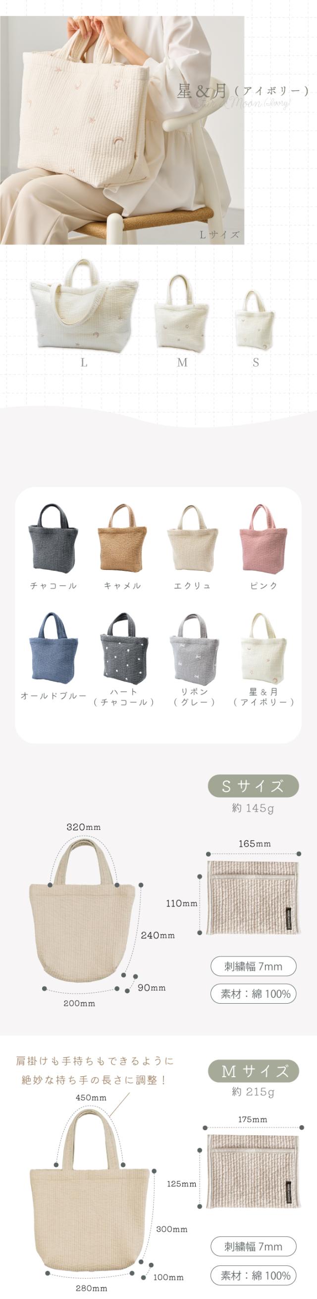 ヌビバッグ Lサイズ トートバッグ マザーズバッグ 刺繍 リボン ハート 月 かわいい マチあり 綿100% 韓国 韓国製 イブル ヌビ キルティング バッグ 洗える レッスンバッグ ママバッグ 大容量 軽量 出産