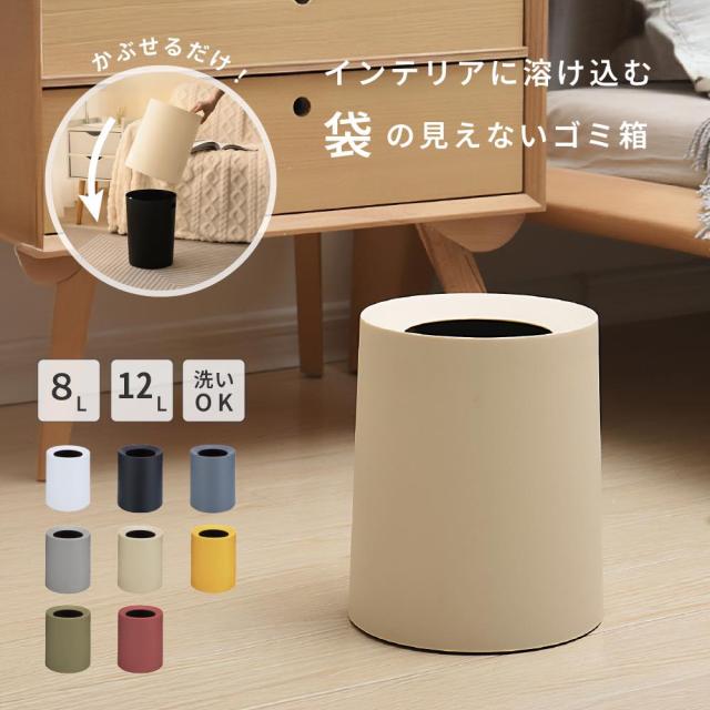 丸型 袋が見えない ごみ箱 8L/12L シンプル 2重構造 フタなし くず入れ 見えない ゴミ袋を見せない 新生活 キッチン ごみばこ ゴミ箱 ゴミ袋が見えない オフィス リビング ビニール袋隠す 寝室 屑入れ 洗面所 袋