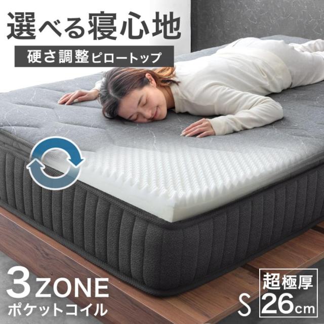 選べる寝心地! 硬さ調整 ピロートップ マットレス シングル ポケットコイル マット ポケットコイル マットレス コイルマットレス ベッドマット ベッドマットレス コイル リバーシブル 抗菌 防臭 シングルマット