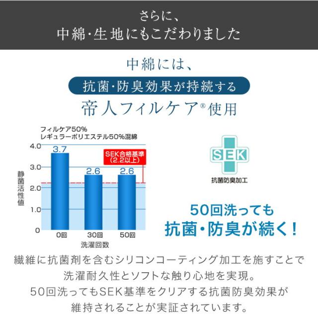 L洗濯耐久性の高い抗菌/防臭中綿フィルケア使用