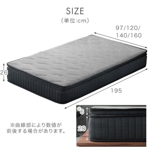 ※マットレスは柔らかい素材で作られてますので、復元直後や、測り方によって多少サイズに誤差が生じる場合がございます。予めご了承下さい。