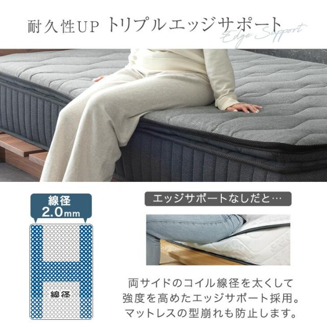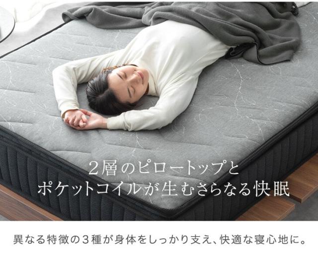 ピロートップマットレス ポケットコイル マット シングル セミダブル ダブル クイーン ポケットコイル コイルマットレス ベッドマット ベッドマットレス エッジサポート S 圧縮