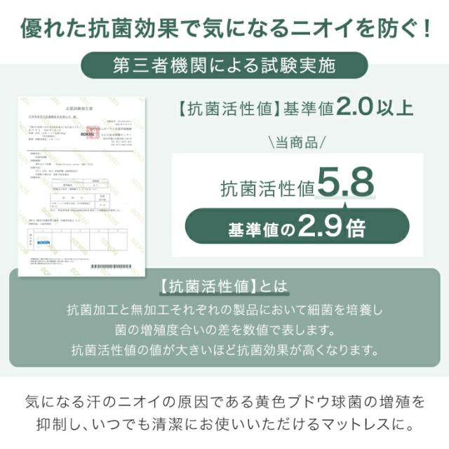 ※マットレスは柔らかい素材で作られてますので、保存期間中の置き方や運搬の仕方、また測り方によって多少サイズに誤差が生じる場合がございます。予めご了承下さい。