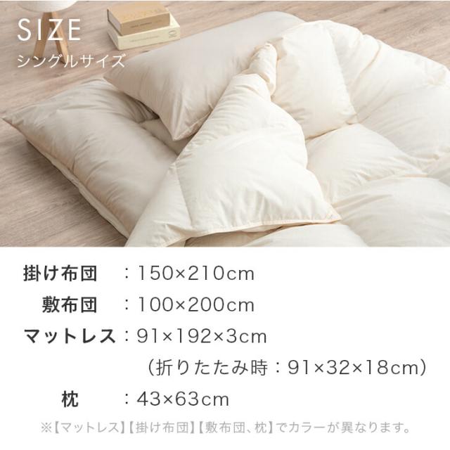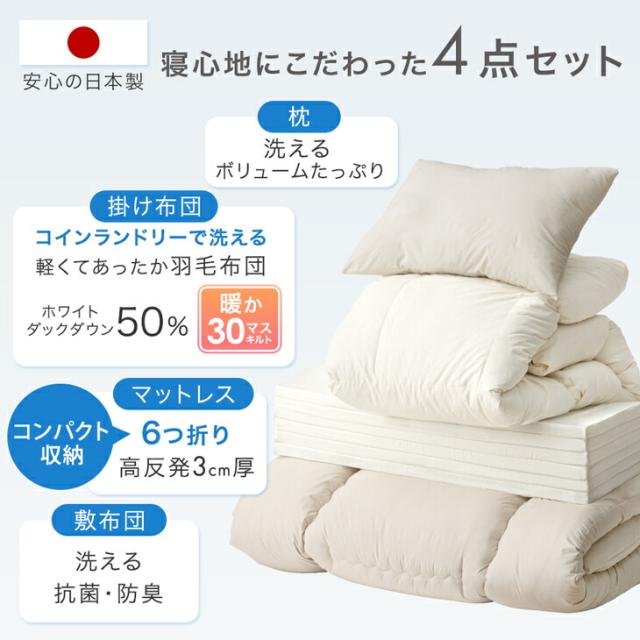 布団セット 4点 コインランドリーで 洗える 羽毛 掛布団 掛けふとん マットレス コンパクト 敷き 敷き布団 ふとん セット 掛け敷き布団セット 寝具 学生寮 民泊 一人暮らし 来客 おしゃれ