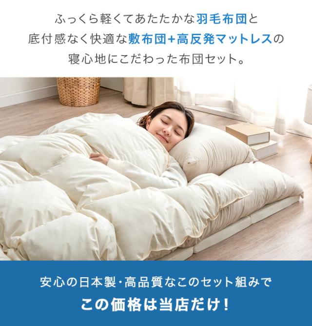 あったか&軽い 羽毛布団セット 4点 国産 高反発 マットレス付き 洗える 羽毛 布団セット シングル 抗菌 防臭 羽毛布団 布団 敷布団 掛け布団 枕 ふとんセット 寝具セット 組布団 来客用 新生活