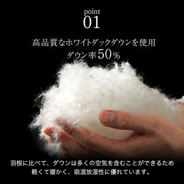 詰め物:ホワイトダックダウン(ダウン50%、フェザー50%)
