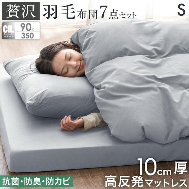 贅沢羽毛90% 高反発マットレス 布団 7点セット シングル 羽毛布団セット マットレス付き 布団セット 布団7点セット 羽毛布団 カバー付き 掛け敷布団セット 掛敷セット 厚み 10cm 洗える 寝具セット