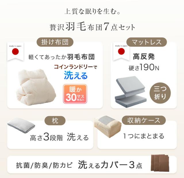 高反発マットレス付き 羽毛布団 90% シングル 7点セット マットレス付き 布団セット 掛け敷き布団セット枕 敷布団 収納袋付き 来客用 羽毛 羽毛ふとん 寝具7点セットふとんセット 洗濯