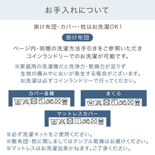 ※掛け布団のサイズはふくらみによって多少の誤差が生じる場合がございます。あらかじめご了承ください。