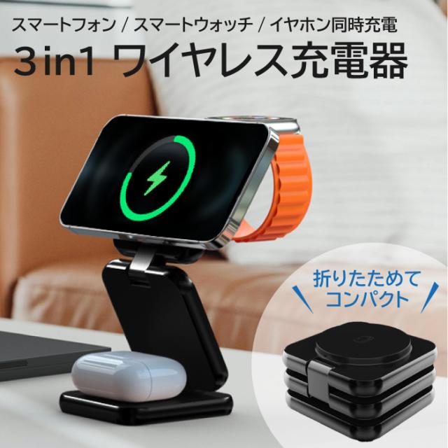 3in1ワイヤレス充電器 ワイヤレス充電器 充電器 急速充電器 iPhone Apple Watch AirPods スマホ スマートフォン ワイヤレスチャージャー 置くだけ充電 Qi 卓上 デスク 充電スタンド 充電ドック マルチ充電器 3台同時充電 便利グッズ Galaxy Xperia Android fj9055