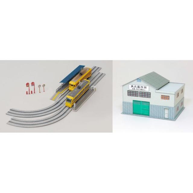 路面電車が走行している都心から下町の風景を再現するのに最適なキット。町工場(ペーパーキット)が本セット限定で付属