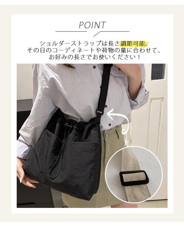 ・ショルダーストラップは長さ調節可能、その日のコーディネートや荷物の量に合わせて、お好みの長さでお使いください!
