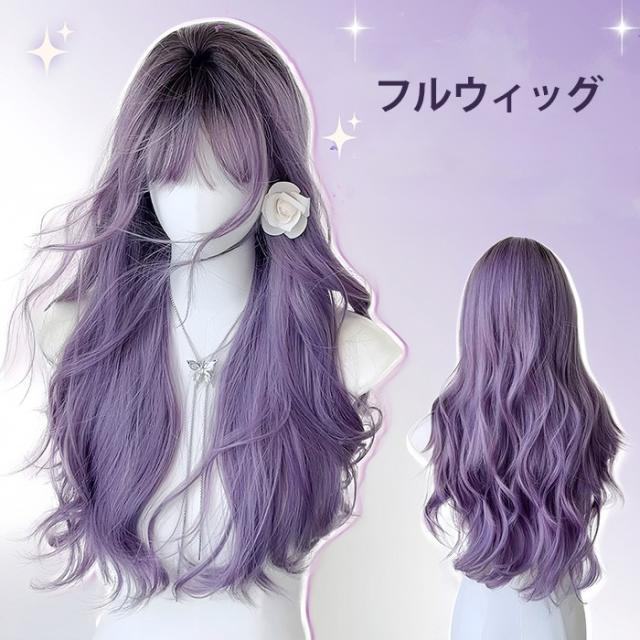 ウィッグ レディース フルウィッグ パープル 紫 ロング 前髪あり 可愛い かわいい 大人用 コスプレ ロリータ ゴスロリ コスチューム 原宿風 仮装 超自然 仮装 かつら 自然 小顔 変装 女装 文化祭 学園祭 dp020lclcm6
