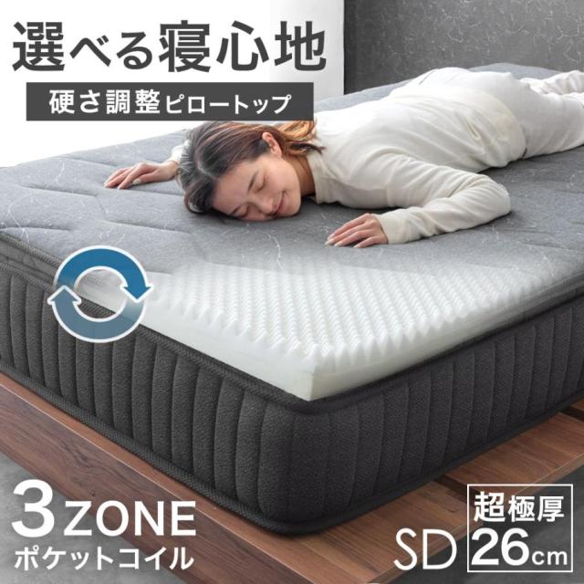 選べる寝心地! 硬さ調整 ピロートップ マットレス セミダブル ポケットコイル マット ポケットコイル マットレス コイルマットレス ベッドマット ベッドマットレス コイル リバーシブル 抗菌 防臭