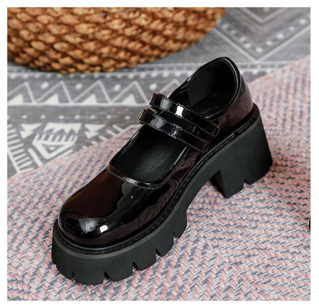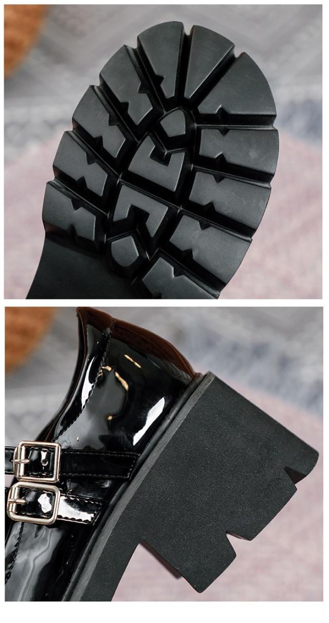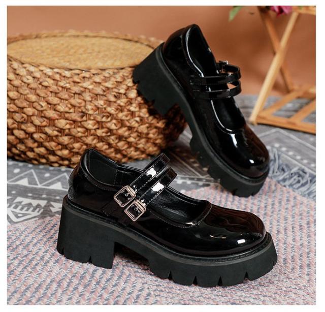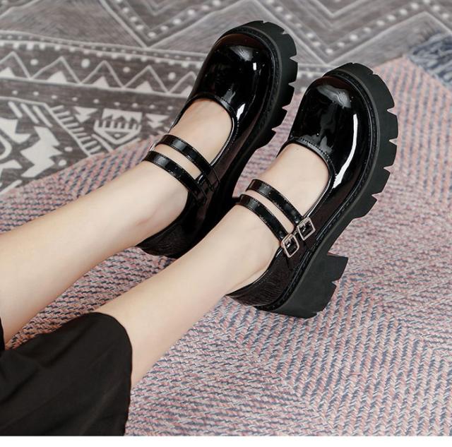 メリージェーン 厚底 靴 大人 子供 レディース シューズ ダブルベルト ストラップ21.5-26.5 おでこ靴 留め金 女子学生 プラットフォーム 通勤 通学 日常 かわいい オシャレ カジュアル シンプル 定番 黒 春夏秋 脱げない