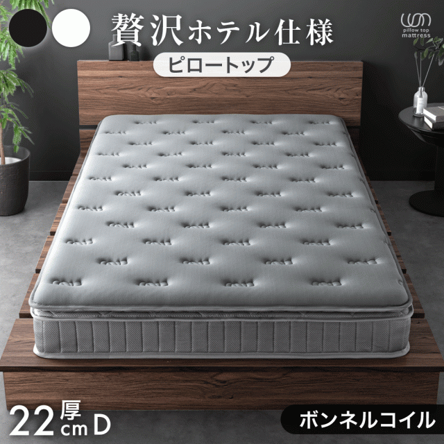 【正午〜P5%還元】 贅沢ホテル仕様 ピロートップ ボンネルコイル マットレス ダブル 抗菌 防臭 防ダニ 極厚22cm ボンネル コイルマットレス ボンネルコイルマットレス スプリングマットレス ベッドマットレス スプリングマット メッシュ 厚め
