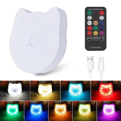 【タッチセンサー・リモコン操作可能・メモリー機能】LEDナイトライトは、電源ボタンをワンタッチでオン/オフでき、猫の口をタッチすると色が切り替わります。