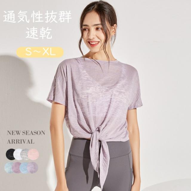 ヨガウェア トップス 半袖 クロス 薄 ヨガ ピラティス ウェア トップス 豊富な品揃え S M L XL 濃いパープル ピンク ブラック ホワイト グレー ブルー パープル グリーン