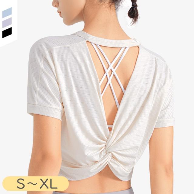 ヨガウェア トップス 半袖 Tシャツ スポーツ アウトドア 豊富な品揃え S M L XL 浅いパープル ベージュ 浅いブルー ブラアク ホワイト