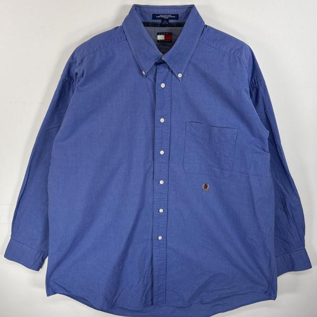 古着 90s/90年代 トミーヒルフィガー TOMMY HILFIGER 長袖シャツ ボタンダウン ワンポインロゴ 刺繍 オックスフォードシャツ 17 XL