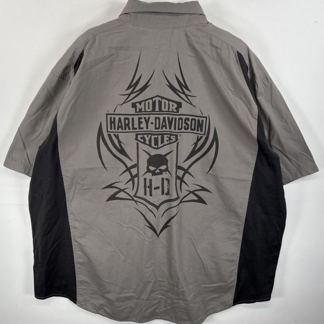 古着 ハーレーダビッドソン HARLEY DAVIDSON 半袖シャツ ボタンダウンシャツ バックプリント スナップボタン 4XL ブラック系 ツートン