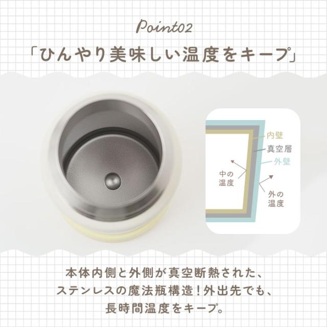 | 素材 | [内びん・びん口部]ステンレス鋼 [胴部]ステンレス鋼(ポリエステル樹脂塗装) [ふた・せん]ポリプロピレン [飲み口・ストロー・パッキン・底ゴム]シリコーンゴム |