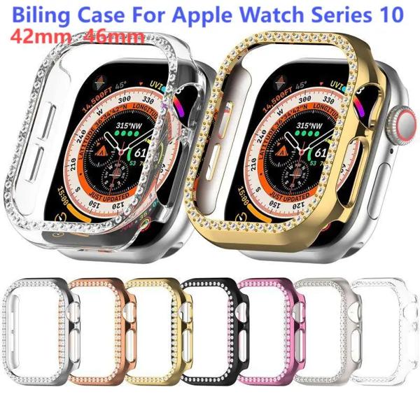 ブリンブリンアップルウォッチ用中空PCケース、シングルダイヤモンドクリスタル、バンパー保護カバー、ウォッチストラッププロテクター、iwatchシリーズ10