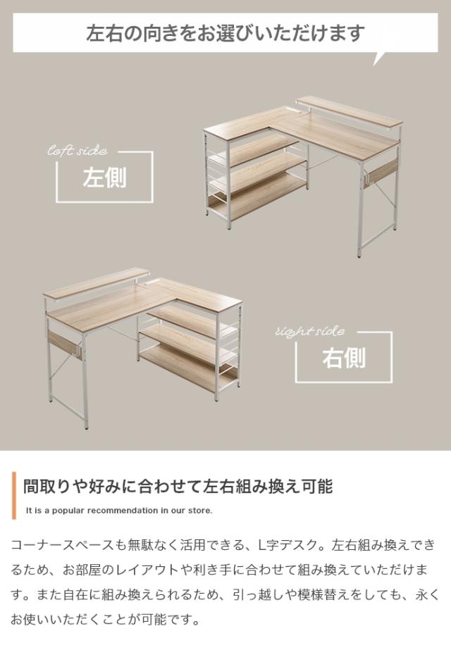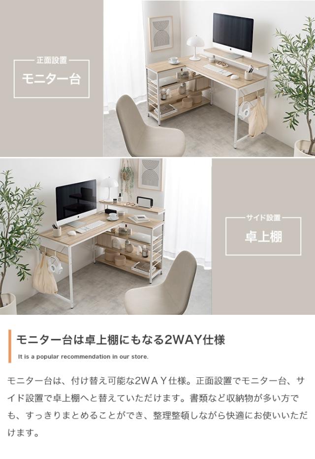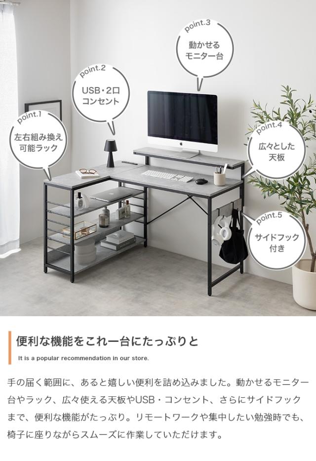 ★国内メーカー保証付★ 人気商品! L字デスク USB 2口コンセント デスク モニター台 ラック 左右組み換え可能 幅120cm メーカー直送 送料無料
