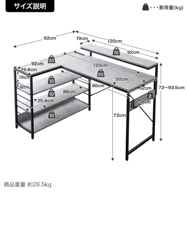 天板)約20kg モニター台)約10kg ラック天板)約20kg 各可動棚)約10kg サイド板)約2kg