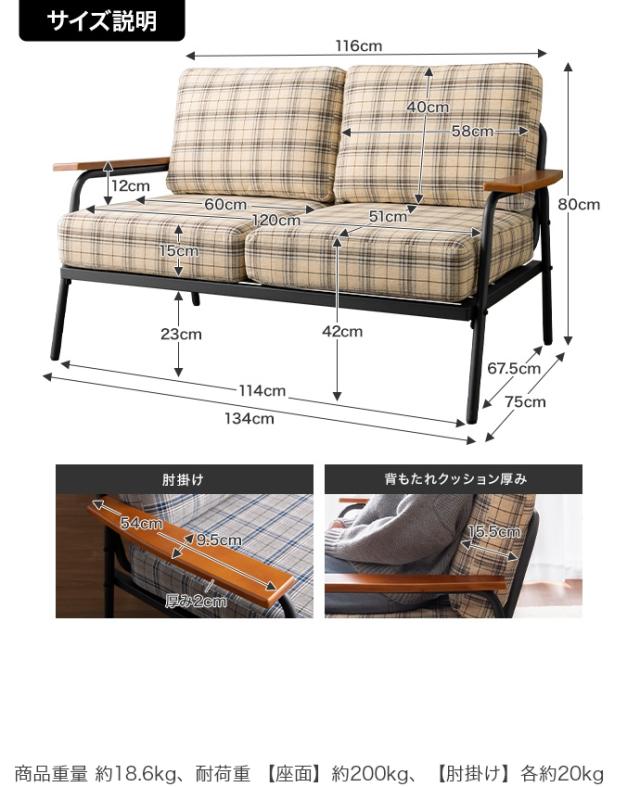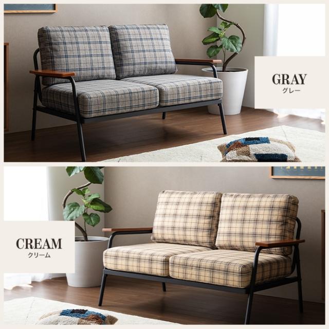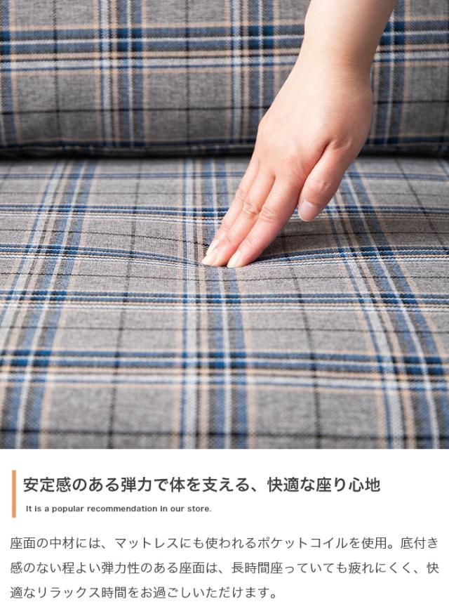 ★国内メーカー保証付★ 2人掛けチェック柄ソファ ヴィンテージ風 ポケットコイル ファブリック生地 安定感 快適 メーカー直送 送料無料