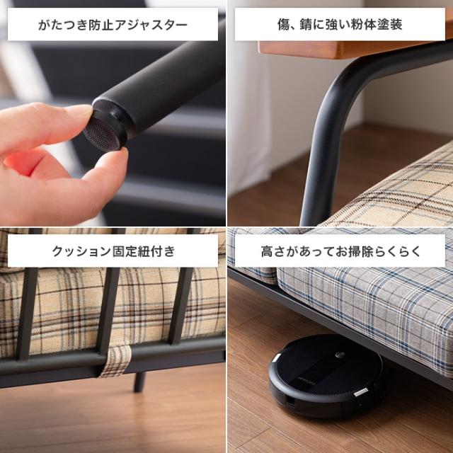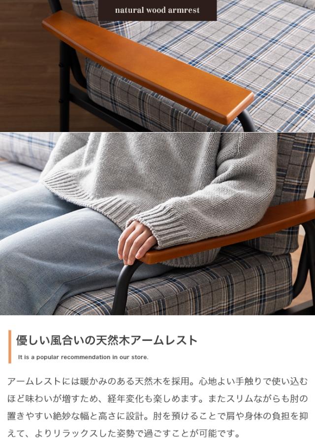 クラシカルなチェック柄に、アイアンフレームと天然木アームの異素材を組み合わせ、空間に深みを与える上質な印象に仕上げました。