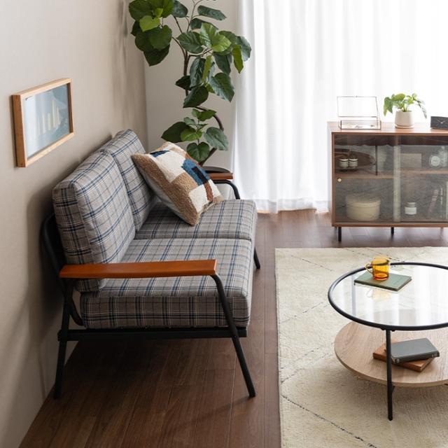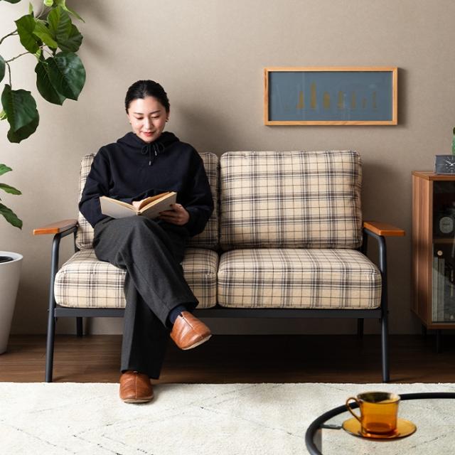 落ち着きと個性を兼ね備えたチェック柄ソファ。