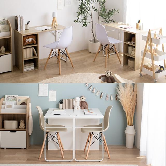 ★国内メーカー保証付★ ツインデスク イームズチェア2脚 4点セット 組み換え自由 長く使える 子供部屋 リビング メーカー直送 送料無料