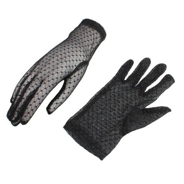 女性用のエレガントなレースグローブ,ヴィンテージ,フルフィンガー,ショート,チュール,ストレッチ,ブラック,透明,運転用ミトン,1ペア