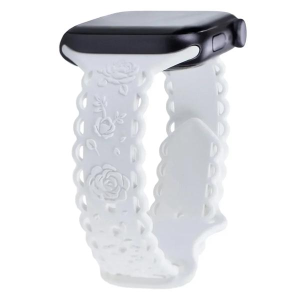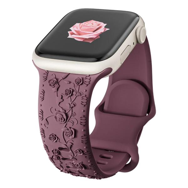Apple Watch用の花が刻印されたブレスレット,iwatchシリーズ10,9,7,se,6,8,ultra 2,44,42,41,40,45mm 49mm、44mm