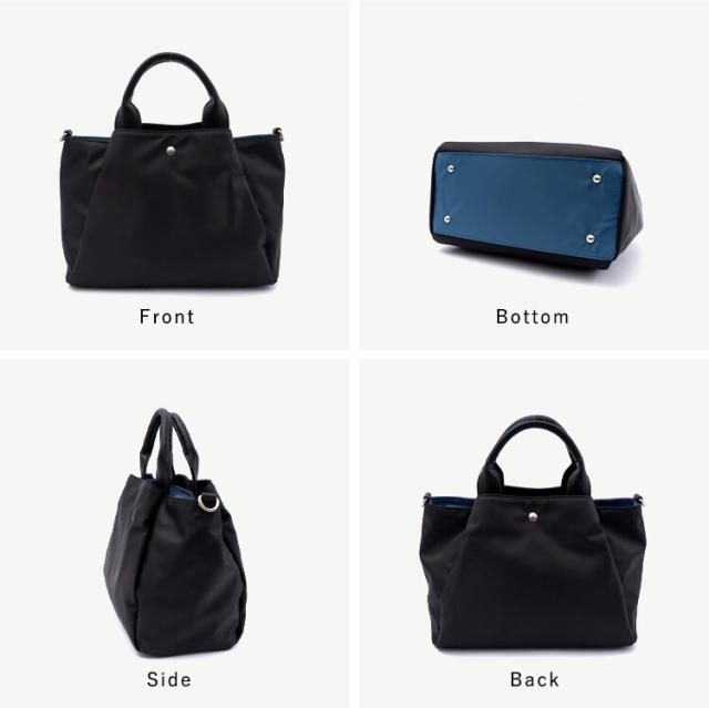 バイカラーがアクセント!3スペース収納のトートバッグ。