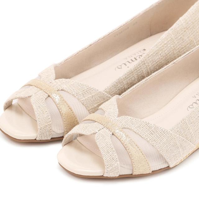 ・生地とラメの入ったチュールの合わせが春夏らしく華やかなウェッジソールパンプス。