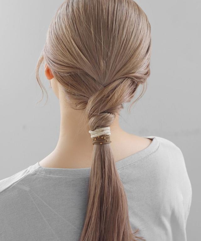 さりげなく煌めくメタルが、うしろ姿に華やぎをプラスするヘアゴム。