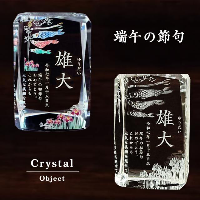 お名前・生年月日をお入れできる、端午の節句にぴったりのクリスタルオブジェです。