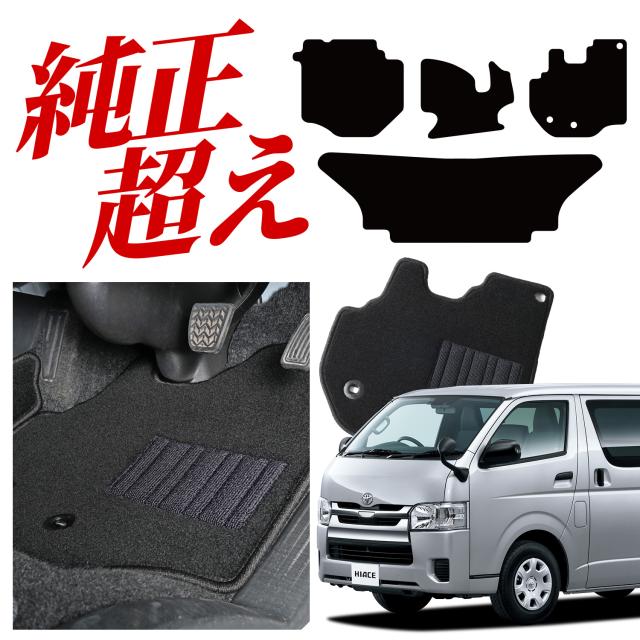 【純正品質】 ハイエース 200 系 スーパー GL 標準 ボディ 5型 6型 7型 8型 フロアマット タフトマット 車 フロア マット ラグマット 運転席 助手席 後部座席 全席 ブラック 高級 厚地 汚れ 日本製 内装 車用品 Lot No.01