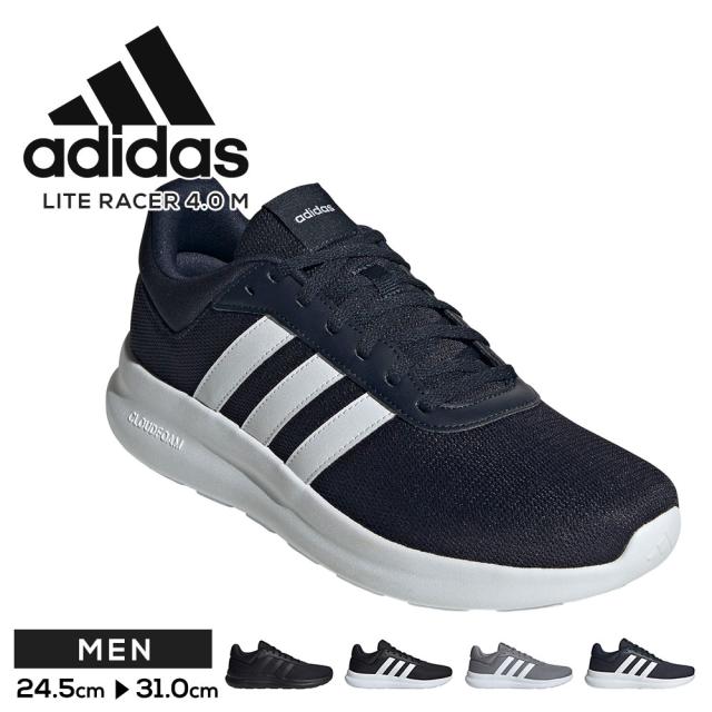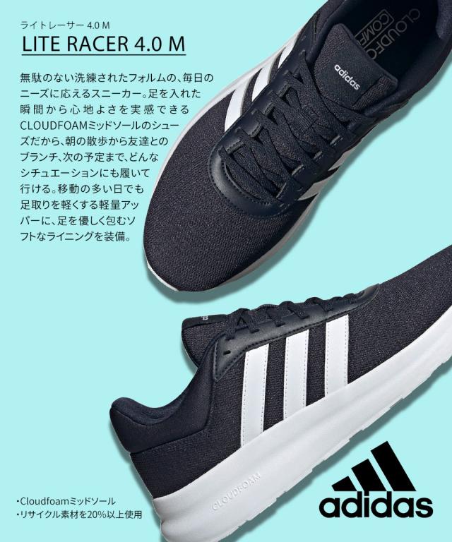 アディダス スニーカー メンズ ローカット 軽量 運動靴 レディース ジュニア メッシュ ライトレーサー ジョギングシューズ ランニング ウォーキング 通勤 通学 黒 ブラック 白 ホワイト グレー adidas LITE RACER 4.0 M
