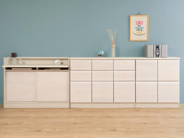 | 材質 | 前板:天然木桐材(ウレタン樹脂塗装) 天板:強化プリント紙化粧繊維板 その他:プリント紙化粧繊維板 |
