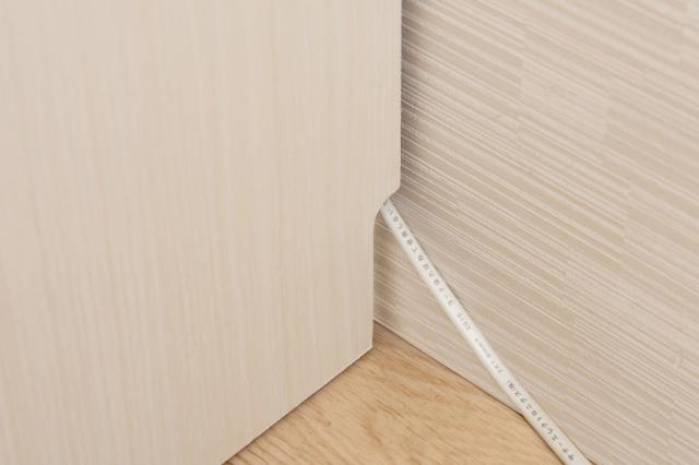 幅木よけ加工が施されているので、幅木やコードをよけて壁にピッタリと美しく設置ができます。