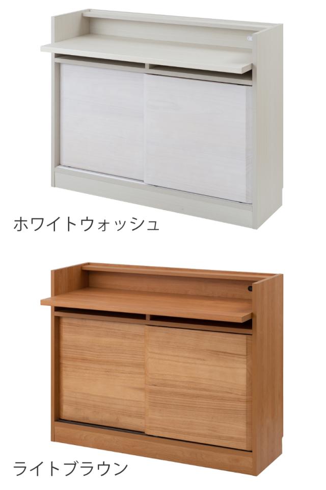 飾り気のないシンプルな仕上がりのデスク型キャビネット(画像:真ん中)です。スッキリとした印象を与え、見た目以上に収納力もバツグンです。プロ職人が組み上げた確かな品質の完成品で、開梱後すぐに設置できます。