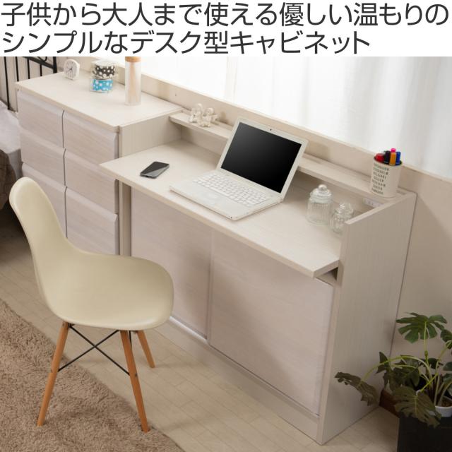 桐 キャビネット 幅107.5cm デスクタイプ 日本製 完成品 ( 棚 ラック デスク 机 天然木前板 コンセント付 A4対応 ビューロー リビング収納 ルーター収納 配線穴 ホワイトウォッシュ ライトブラウン )