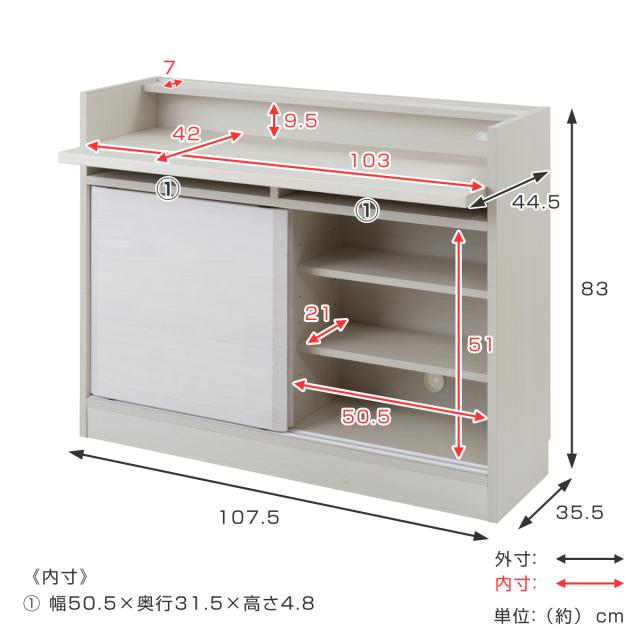 | サイズ | 約 幅107.5×奥行33×高さ83(cm) |