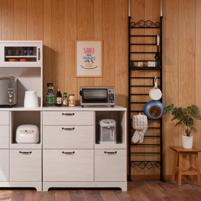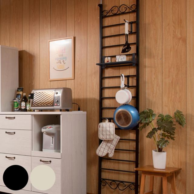シンプルなのに機能が充実したラダーラック 40cm幅です。ちょっとした壁面スペースに、突っ張り式で簡単に設置できます。置く・掛ける・飾ることができる、すぐれものです。上下のカール状のデザインが、スチールの無骨さをやわらげ、お部屋を雰囲気のある空間にしてくれます。