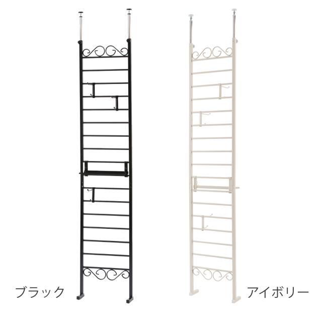 突っ張り ラダーラック 幅40cm フック3個 棚板1枚付き カールデザイン ( 壁面収納 ウォールラック つっぱり 突っ張り式 ラック フック付 壁面 収納 突ぱり 壁面ラック 突っ張りラック パーテーション 省スペース )