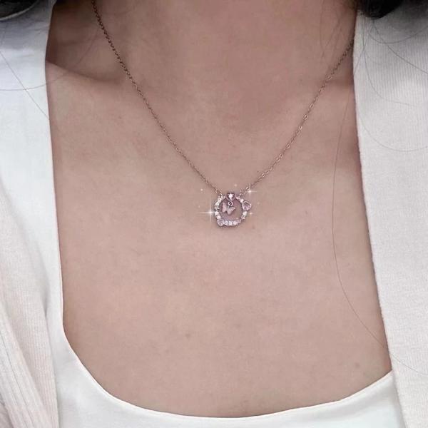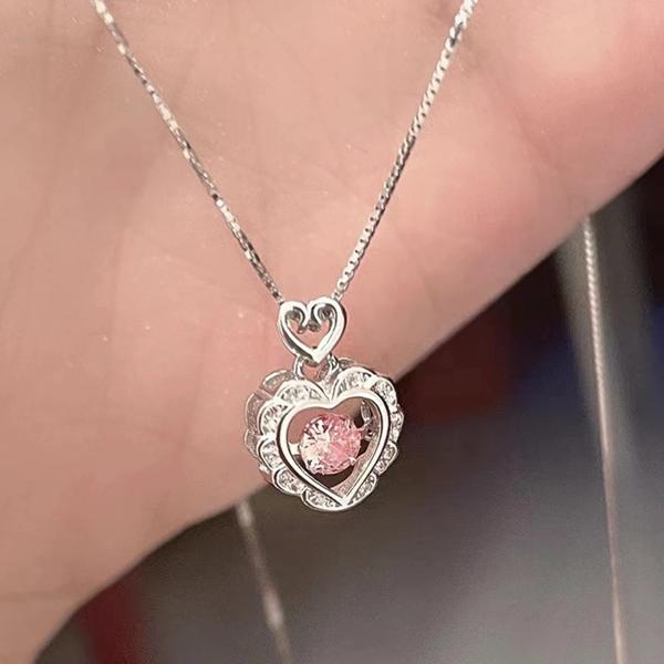 Param-女性と女の子のためのピンクのクリスタルペンダントネックレス,かわいい愛のチェーン,シンプルなネックレス,韓国のファッション,ジュエリーギフト